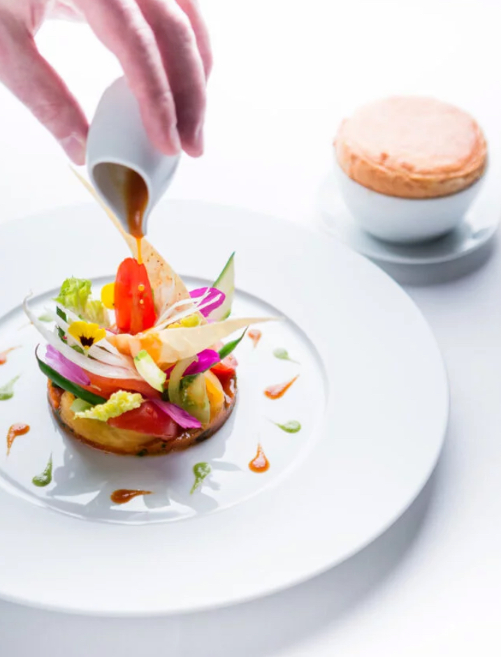 Cuisine raffinée, ingrédients locaux, de saison, service d’exception.